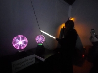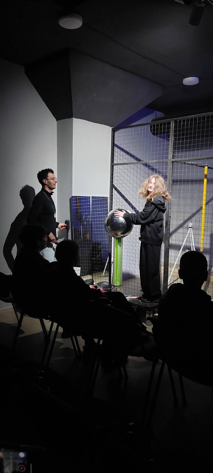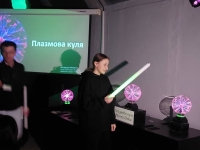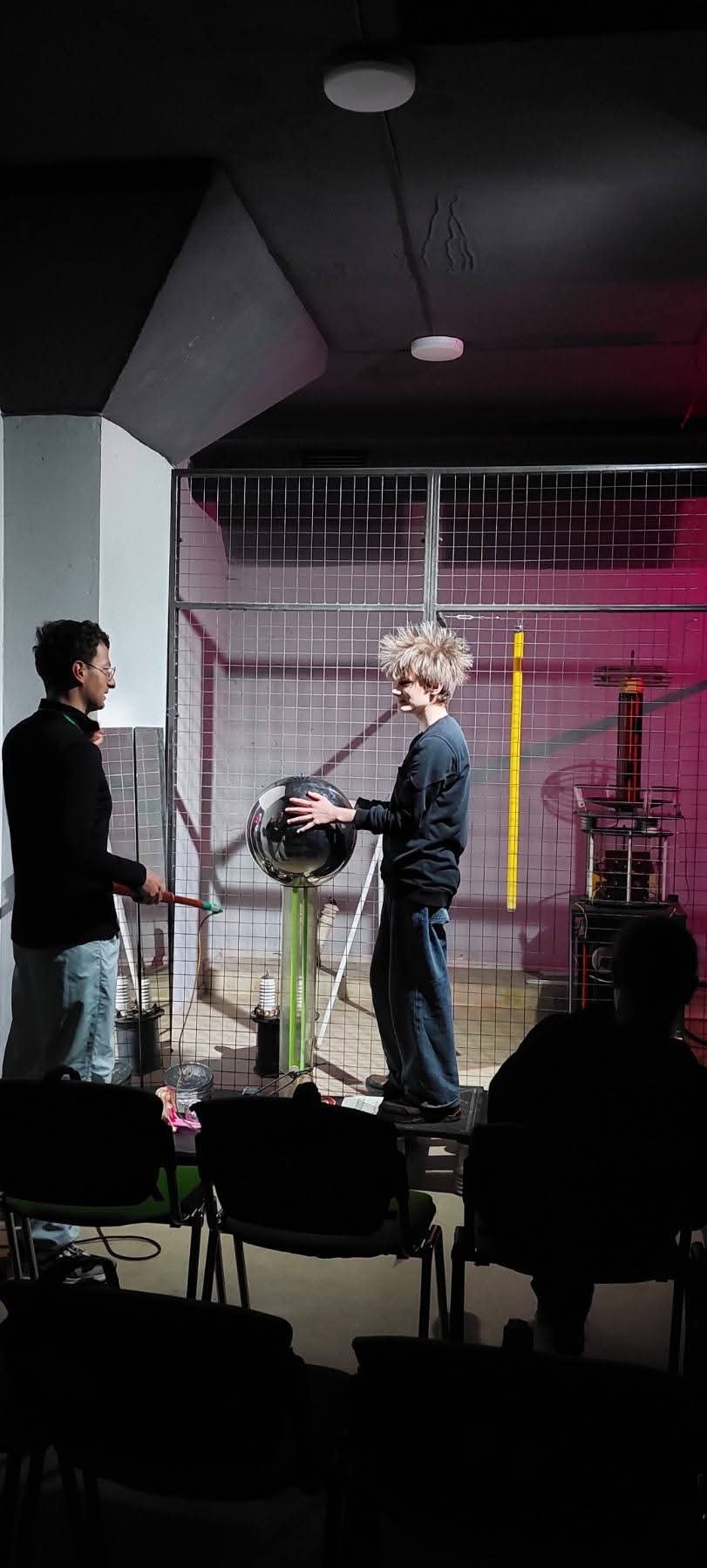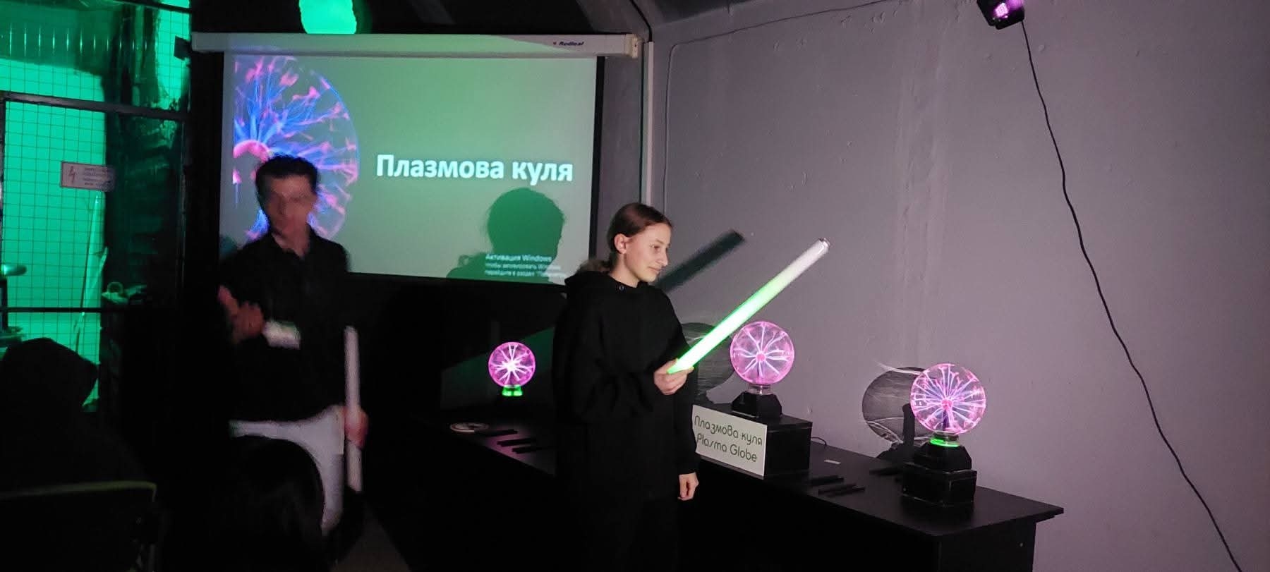 Під час заходу школярі стали свідками ефектних дослідів з електрикою: яскравих розрядів, роботи котушки Тесли, світіння ламп без дротів. Ведучий доступно пояснював фізичні явища, поєднуючи науку з видовищністю.