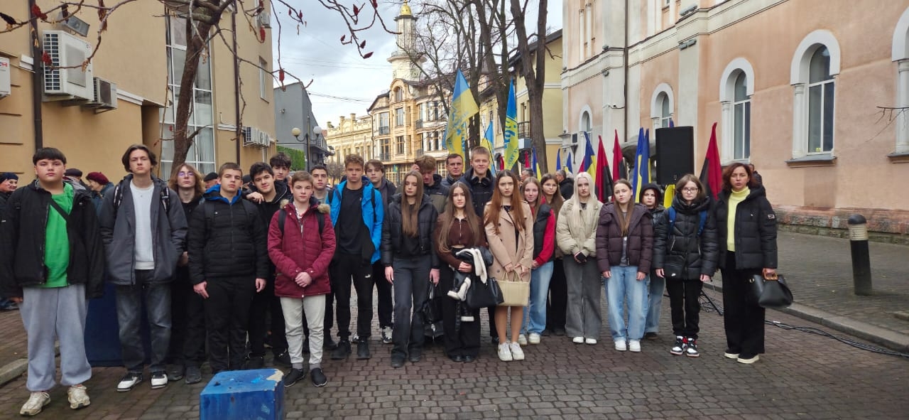 Сьогодні, віддаючи шану невинно убієнним, учні 9-11 класів та педагоги нашого Ліцею зібрались біля місця пам’яті, щоб покласти квіти, запалити лампадки та згадати про тих, хто не скорився окупантам.