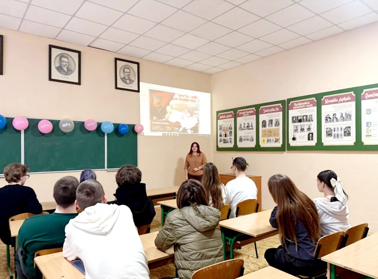 До Дня пам’яті Героїв Крут учні 11-А класу переглянули художній фільм «Крути 1918», який допоміг глибше усвідомити події тих трагічних і водночас героїчних днів.