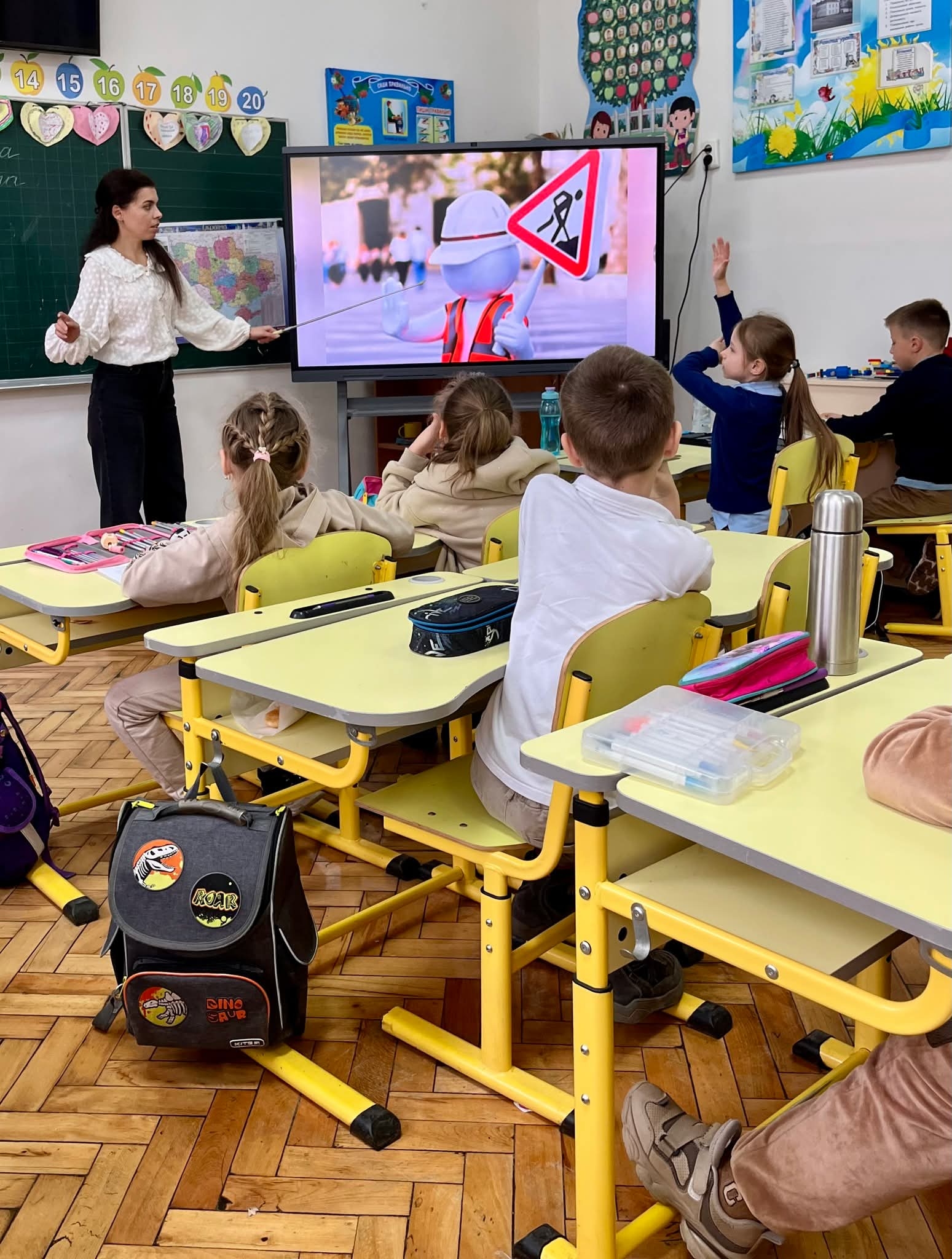 Під час заняття діти пригадали основні правила переходу дороги, значення дорожніх знаків, дізналися про поведінку пішоходів і велосипедистів. Учні переглянули тематичні відео, виконали інтерактивні завдання, обговорили різні життєві ситуації, що можуть трапитися дорогою до школи чи додому.