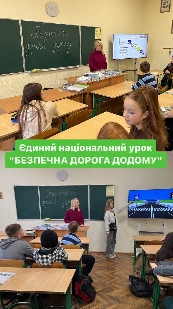 Сьогодні класні керівники 1-11 класів провели Єдиний національний урок «Безпечна дорога додому», метою якого було нагадати учням правила дорожнього руху та формувати відповідальне ставлення до власної безпеки.