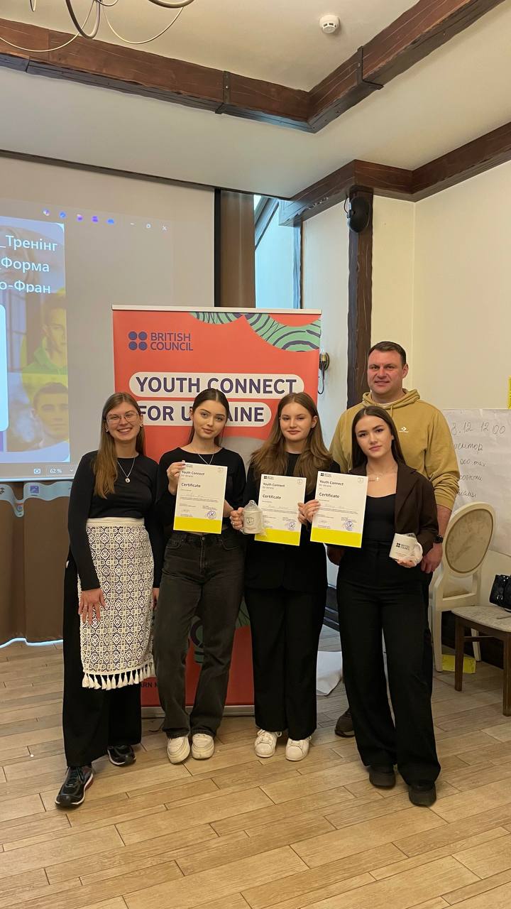 Учениці 10-А класу (класний керівник - Іванна Луканюк) Віскуп Алла, Гукова Анна та Лубик Ніна взяли активну участь у 5-денному тренінгу «Youth Connect for Ukraine: лідерство, партнерство, зміни», який відбувся за фінансової підтримки Британської Ради в Україні.Протягом заходу дівчата розвивали лідерські та комунікативні навички, а також навчалися розробляти проекти соціальної дії, які можуть позитивно впливати на місцеві громади та сприяти змінам у суспільстві.