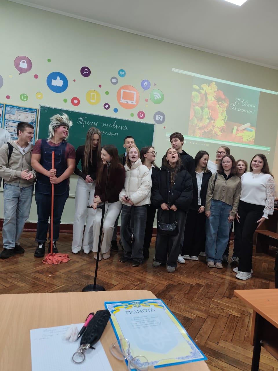 Особливою родзинкою святкування став оригінальний урок, який підготували старшокласники. Під час нього учні розіграли яскраві сценки та виконали щирі пісні, які створили неповторну атмосферу радості й тепла. Ця подія принесла усім присутнім незабутні емоції, додала святковості й показалоа що взаєморозуміння та повага - найкращий подарунок для кожного педагога.