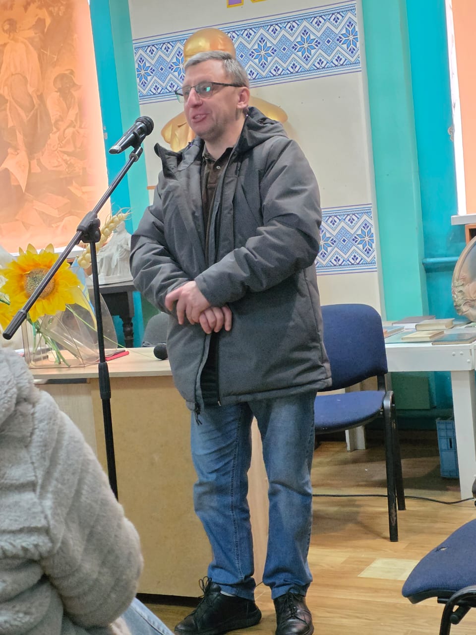 Коли слово взяв Ярема Ілку — у залі запанувала тиша. Він говорив просто, чесно і дуже особисто: про службу, про поранення, про той момент, коли був змушений самостійно накладати собі турнікети, і про те, що давало сили вистояти.